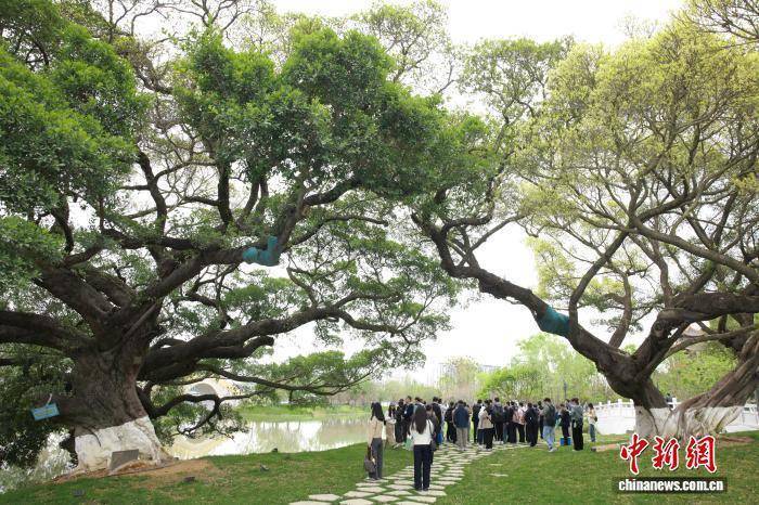 园博园内,原址保留的古榕树吸引民众参观。孙杨洋 摄