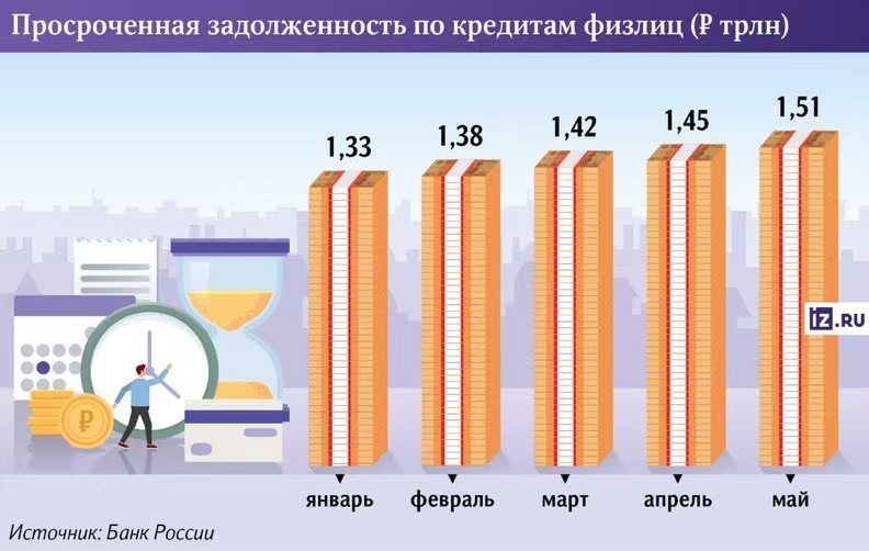 俄罗斯公民的贷款逾期债务总额已达1.5万亿卢布(约190亿美元),年增长率高达40%。这是俄罗斯中央银行的数据。