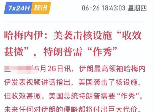 甚至还嘲讽美军对伊朗核设施的袭击“没有任何成效”,美国之所以选择对伊朗发动袭击是担心以色列被伊朗彻底摧毁。