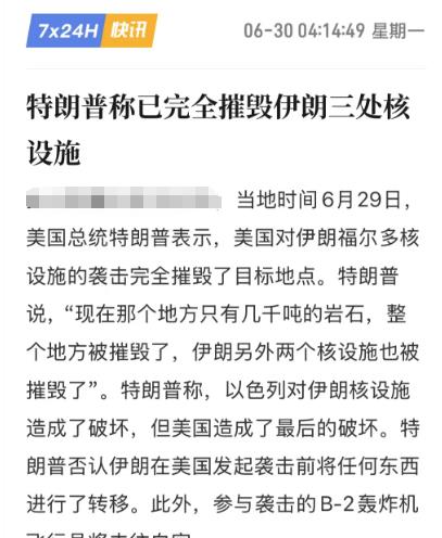 在当地时间6.29日,特朗普再次重申“已经完全摧毁了伊朗三处核设施”。